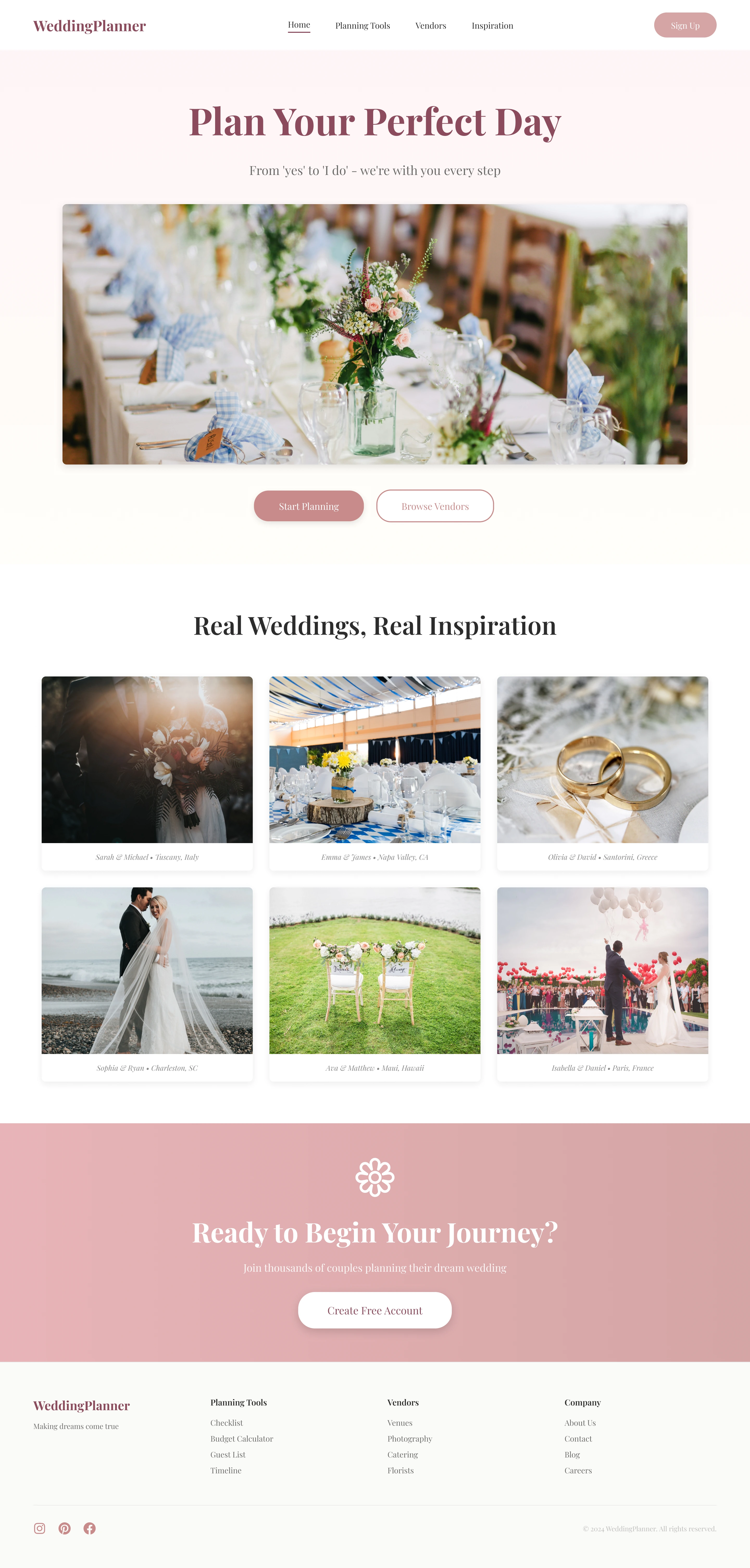 Footer: minimal with email signup, social icons, "Made in California" badge.