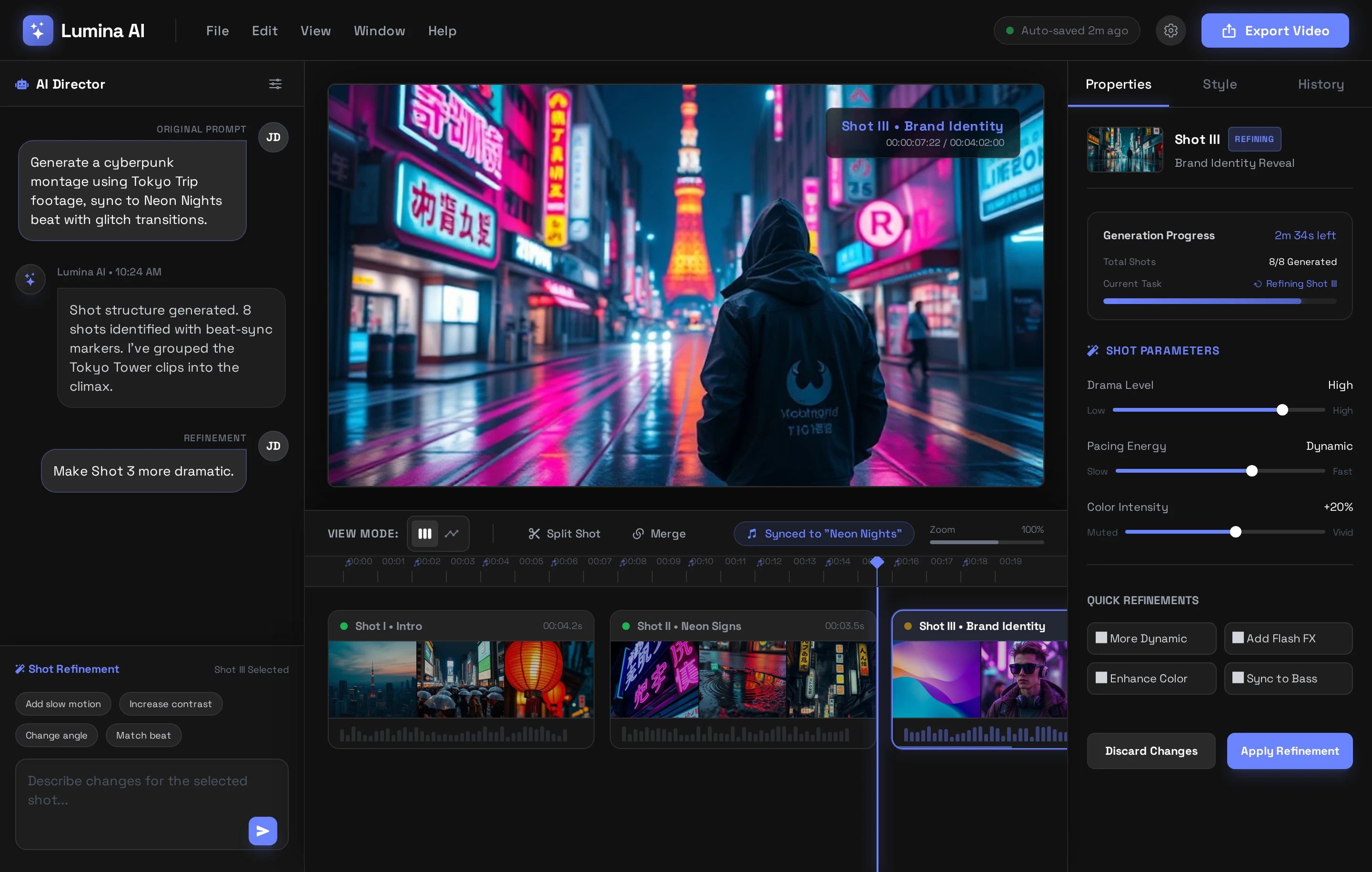 Generate cinematic product videos with AI-powered editing and motion graphics